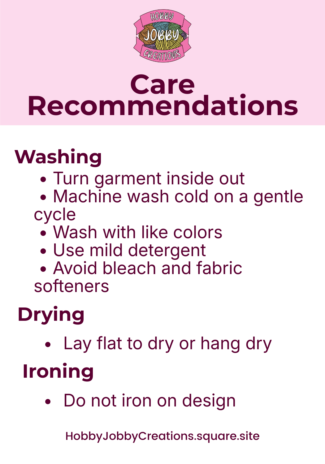 Garment Care Recommendations: